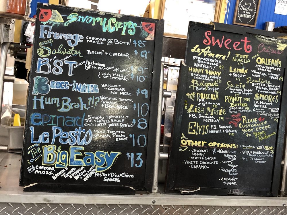 - Savory Crepes: Options include BST, a delicious mix of spinach and tomatoes, and Salivator, with real bacon and sharp cheddar.